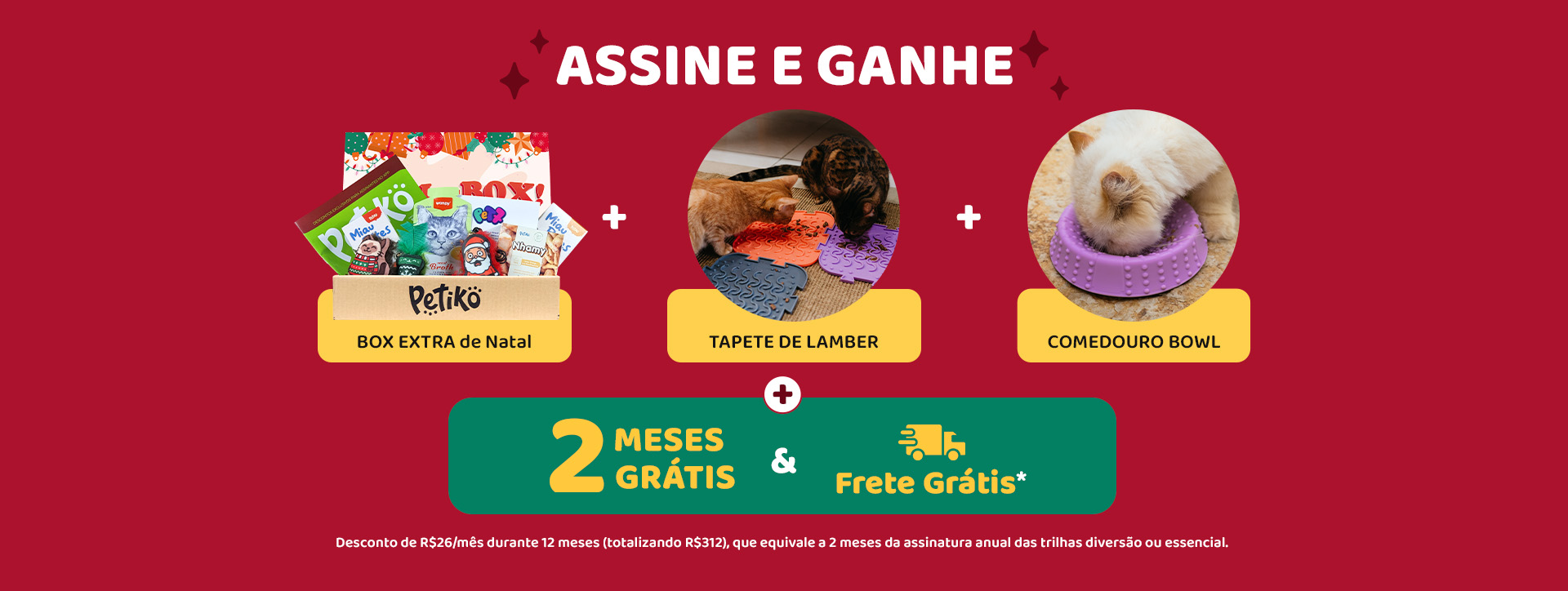 Se tem uma coisa que a gente entende, é o gosto refinado dos gatos. Por isso, o BOX.Petiko é feito para agradar até os felinos mais exigentes. Todo mês, seu gato recebe um BOX com tema diferente, recheado de brinquedos envolventes, alimentos úmidos deliciosos, petiscos selecionados, a revista Petiko e, dependendo da trilha escolhida, até areia biodegradável de mandioca.