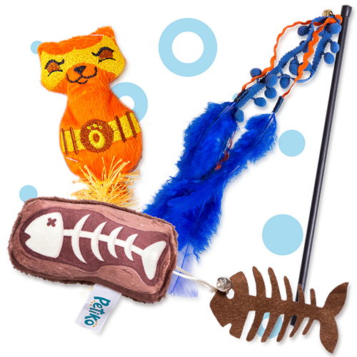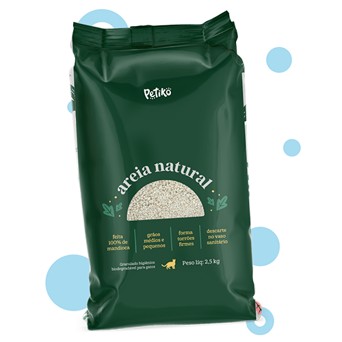 Seu gato vai receber 2 brinquedos, 2 alimentos úmidos, 2 petiscos, 1 pacote de areia biodegradável de 2,5 kg (100% mandioca), além de uma revista repleta de dicas e matérias exclusivas.